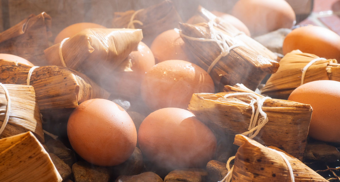 硫黄山の蒸気が上がる様子を蒸し料理で再現した「硫黄山料理」や、